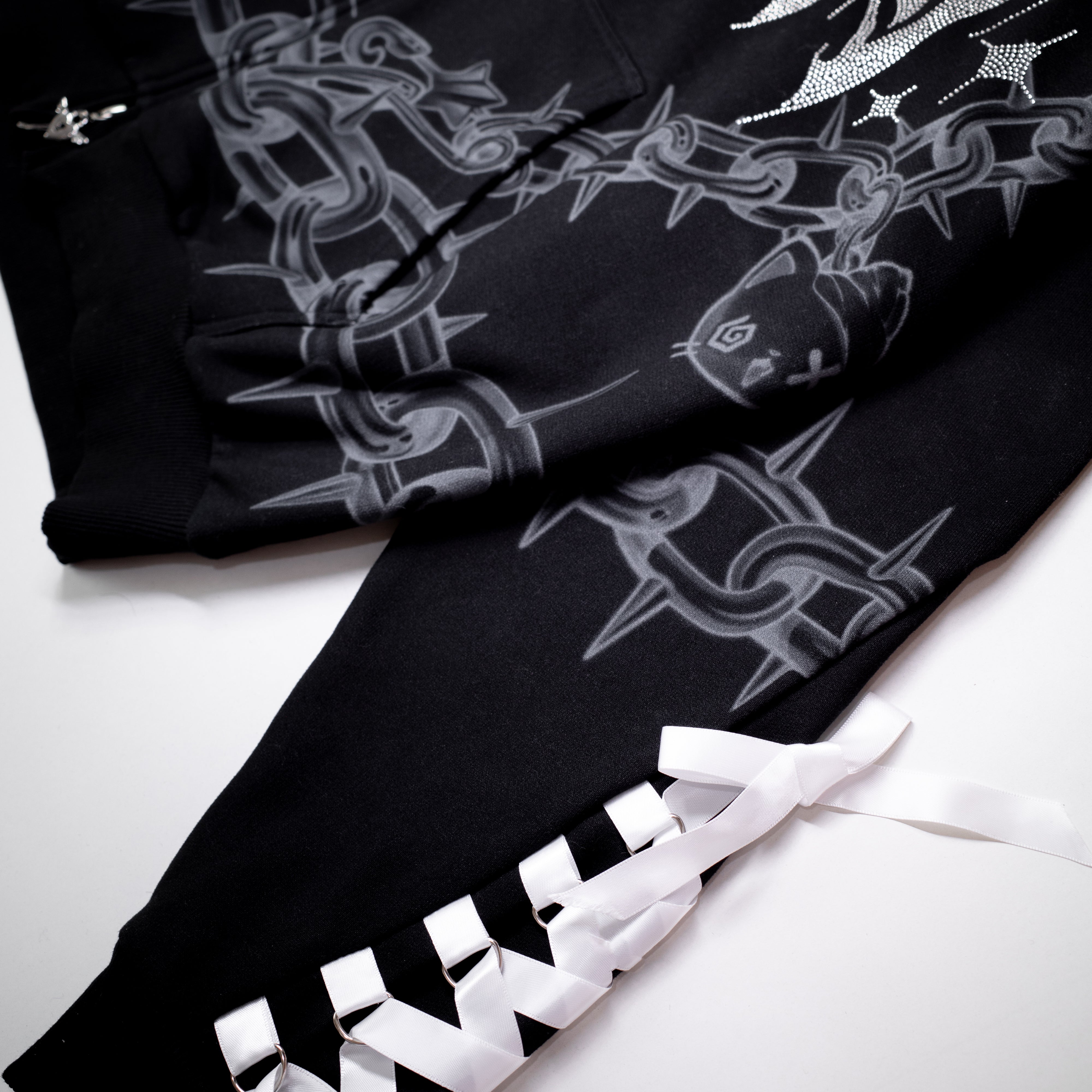 ♡ Featuring an oversized rhinestone “Death Kiss”lettering art design on the chest 🖤